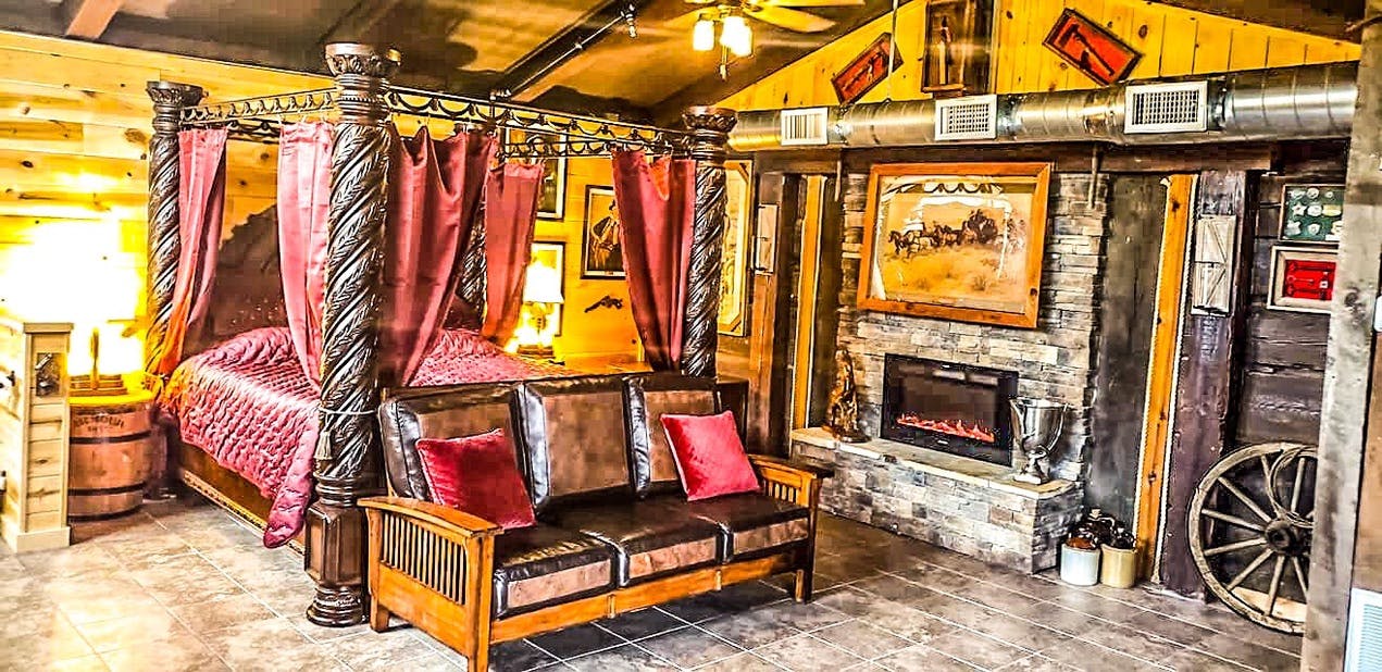 Come stay in the Wild Wild West King Size Poster Bed with your sweetheart! Luxury at it's finest!